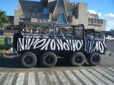 Einen Ausflug mit dem "Monstertruck" ins Landesinnere